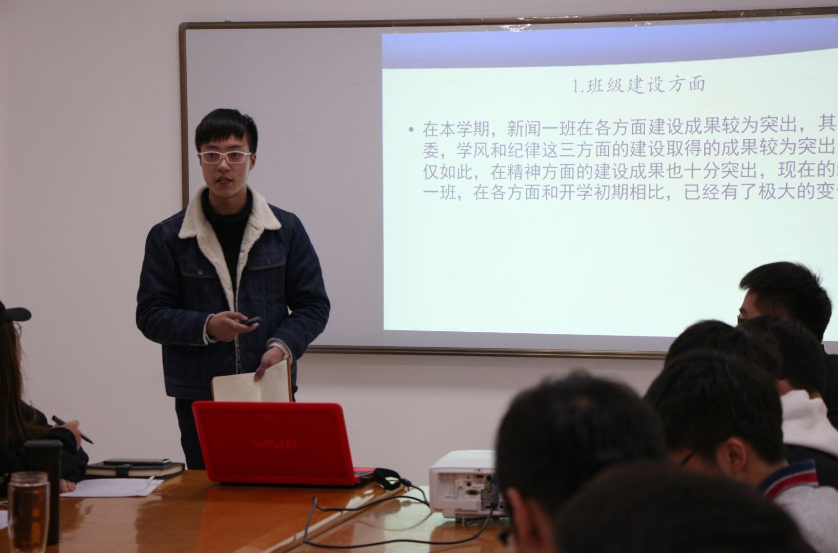 会议上,各班班长主要围绕“班长的自我要求、班风学风的建设、班级成绩以及未来发展方向”三个模块进行报告。17新闻一班的班长张无忌先是从学风建设和班级建设两方面总结了他在班级本学期的工作,紧接着,他反映在下学期会积极召开班委会以及班级活动,进一步管理班级,改善班风。16新闻全媒体一班的班长蒋湾将本学期班内大小活动进行说明,并详细地一一总结,他表示,本班出勤情况良好且班级凝聚力强,下学期将继续努力保持。