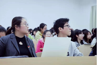 11月7日晚6点一教222座无虚席,beat365新闻秘书学生党支部党员、新闻系2019新生200余人齐集一堂,聆听新闻系教工党支部的五位老师的“入党故事”。活动发起人、新闻系教工党支部书记曹茶香老师开场时说,此次分享活动秉守“思想交流、守护成长”之初心,坚定引领护航之使命。
