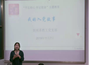 主题活动中,高东教授、新闻系教工党支部书记曹茶香老师、刘燕老师、蔡福恩老师、19新生辅导员李静老师依次上台与学生分享自己入党的故事和自己在大学的生活。