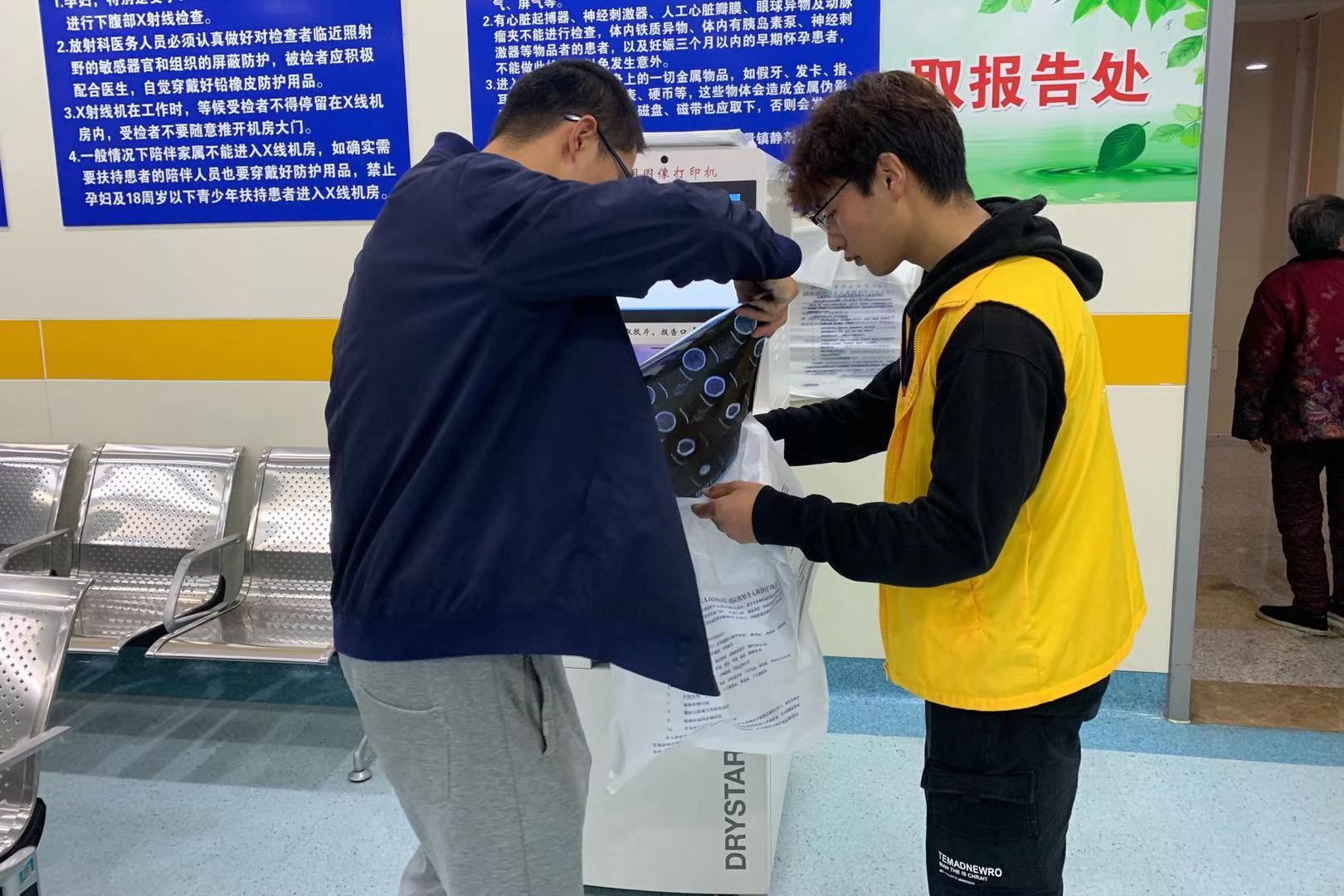 当天上午7:20,志愿者们于北门全家集合完毕后,一同乘坐公交车前往六院东院。志愿者们在服务台签到完毕并前往更衣室迅速换上志愿者服装后再次来到大厅集合,听从相关负责人的安排在各自的岗位上进行志愿服务。此次活动内容主要是协助患者操作使用自助挂号机、取片机以及取报告机。志愿者们在护士的指导下很快掌握了机器的使用方法,同时也身兼指路者的角色,面对患者的疑问也耐心听取并一一进行解答,加快了患者就诊的速度。