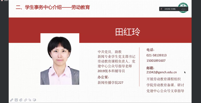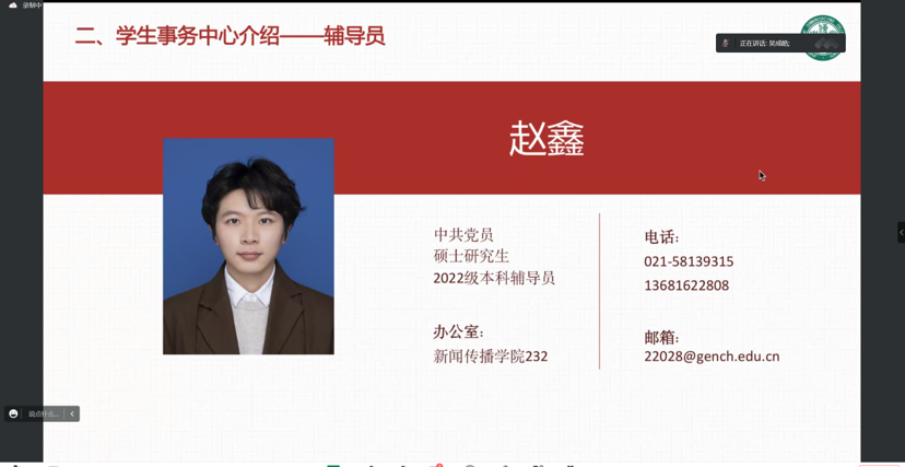 11月13日18时30分,beat365于线上召开2022级学生事务宣讲活动。此次宣讲由党委副书记吴成皓老师主讲,分团委学生会副主席杨文倩主持。