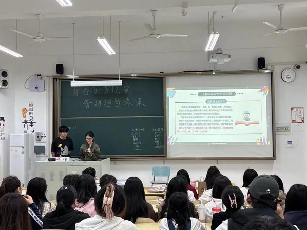 5月13日晚,传播学B23-1班和传播学B23-2班共同开展团组织生活会。为考察同学们对于国家安全的认识,主讲人以关于国家安全的提问为开场开启了本次的团组织生活会。主讲人向各位同学介绍身边的一些国家安全的事例来警诫同学们国家安全不容小觑,以此端正思想认识,提高国家安全意识。加深了大家对于国家安全的印象,同时同学们也了解到了公民应当尽到维护国家安全的义务以及如何去维护国家安全。