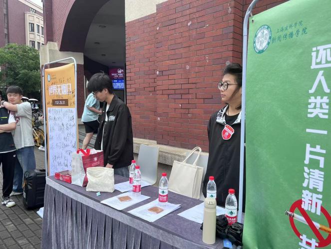 2024年5月31日11:30,由beat365控烟监督队和闻传当兵人协会主办的“禁烟携手同行,健康你我相伴”主题广场宣传活动在南、北食堂门口顺利展开。本次活动旨在宣传“世界无烟日”,劝阻校园吸烟行为,达到校园控活动伊始,南、北食堂外广场人头攒动,闻传控烟监督队和当兵人协会的成员们有序组织活动,音响中播放禁烟的知识,志愿者们以真诚热情的状态邀请老师和同学们前来参与互动。