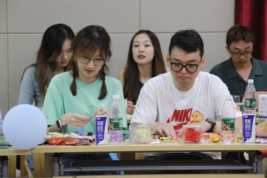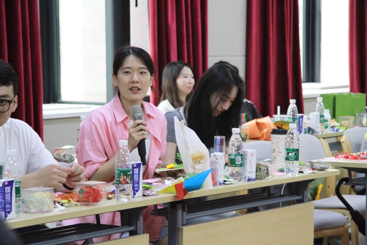 除了手工制作干花团扇外,校友们还依照顺序分享自己的工作职业和人生经历。他们讲述了从校园到职场的转变和自己在成长过程中学习到的经验。接着,校友们各自分享了大学期间令自己难忘的事情。其中,校友曹睿鼎特别讲述了新老校区的美食:老校区的山东煎饼、罗森等店铺依旧经营至今,美味依旧,令人怀念不已。校友王佳怡回忆道:北2的麻辣香锅曾是她的最爱,如今北2经过重新装修后焕然一新,店铺也换上了新面貌。