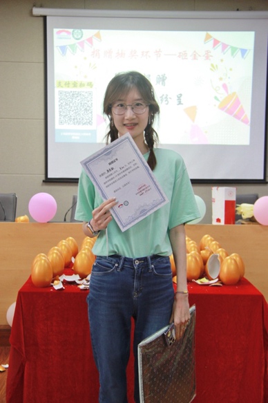 接着,活动进入到了捐赠抽奖环节——砸金蛋,校友们慷慨解囊,将对母校深深的爱意化为实际的行动,捐赠的金额不断攀升,凝聚着校友们对母校的无限热爱和期待。现场氛围热烈而温馨,欢声笑语中,一颗颗金蛋在众人期待的目光中被敲碎,发出清脆悦耳的“砰砰砰”声。捐赠的校友们都获得了精心准备的礼品和证书,这次捐赠抽奖环节进一步加深了校友们与母校之间的情感联系。